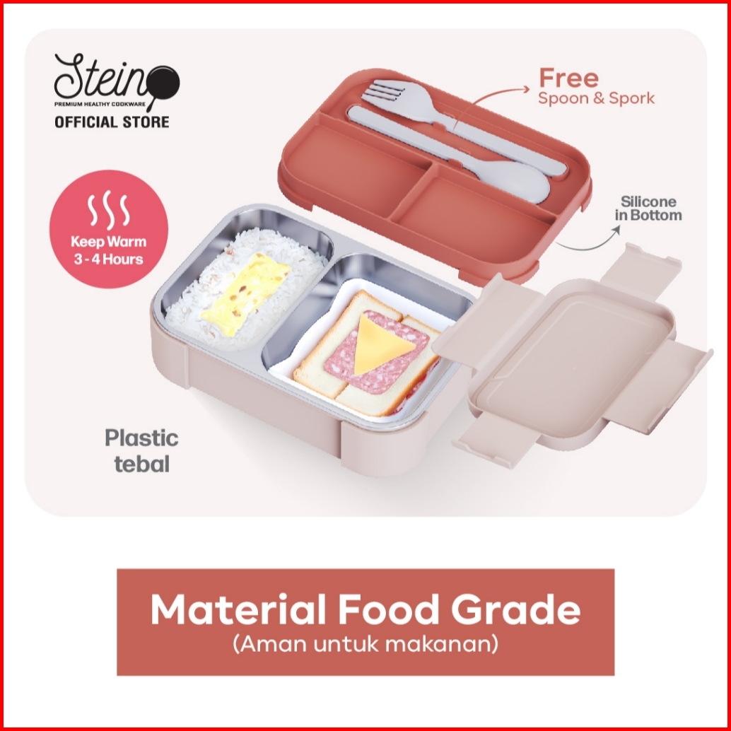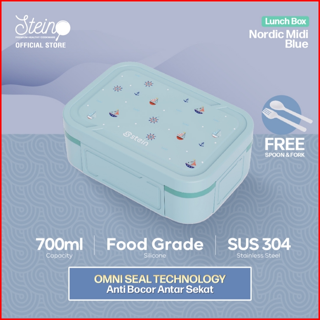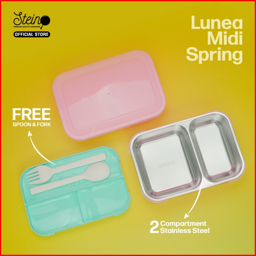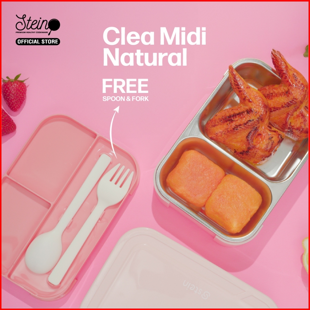 Stein Lunch Box Stainless 304 Midi Natural - Kotak Makan Stainless 700ml Free Sendok Garpu