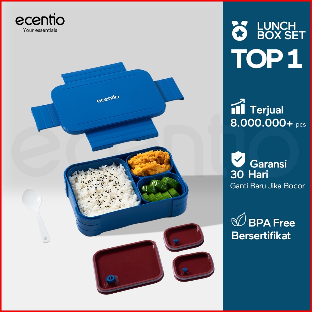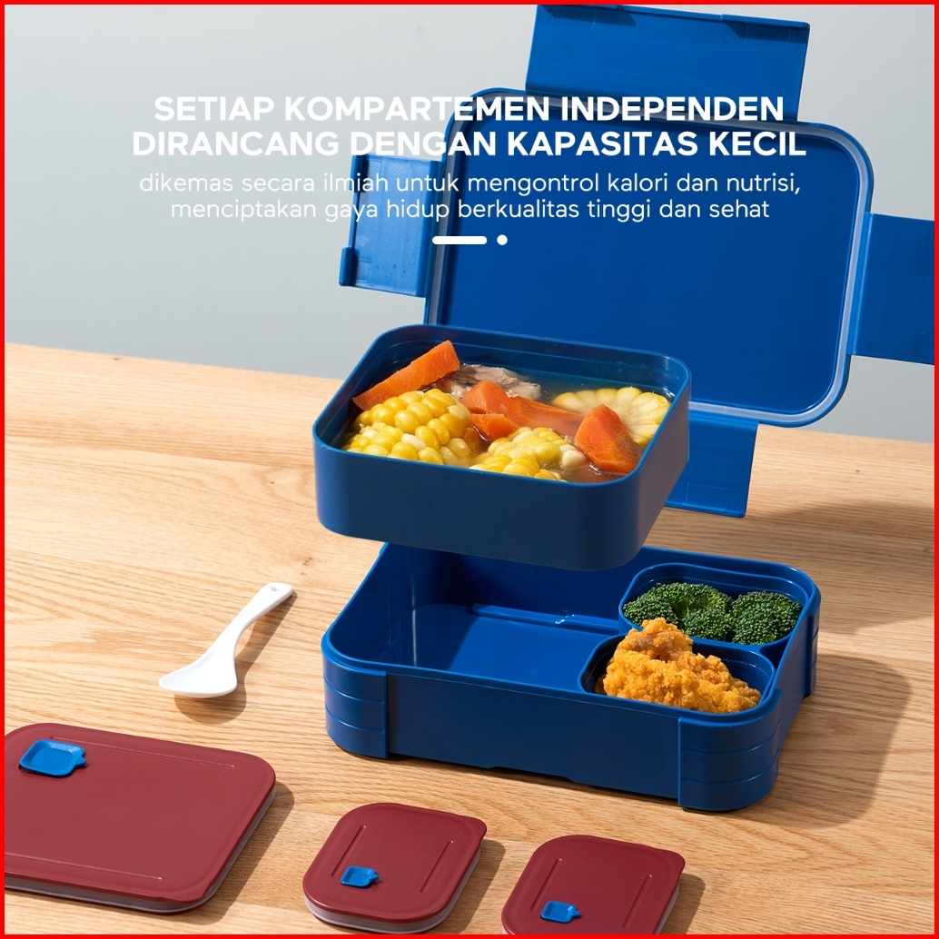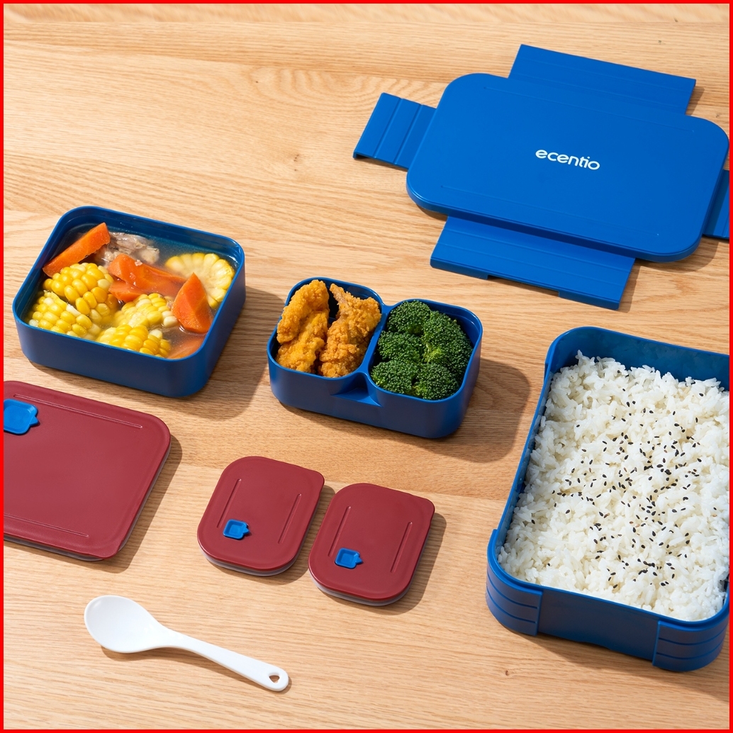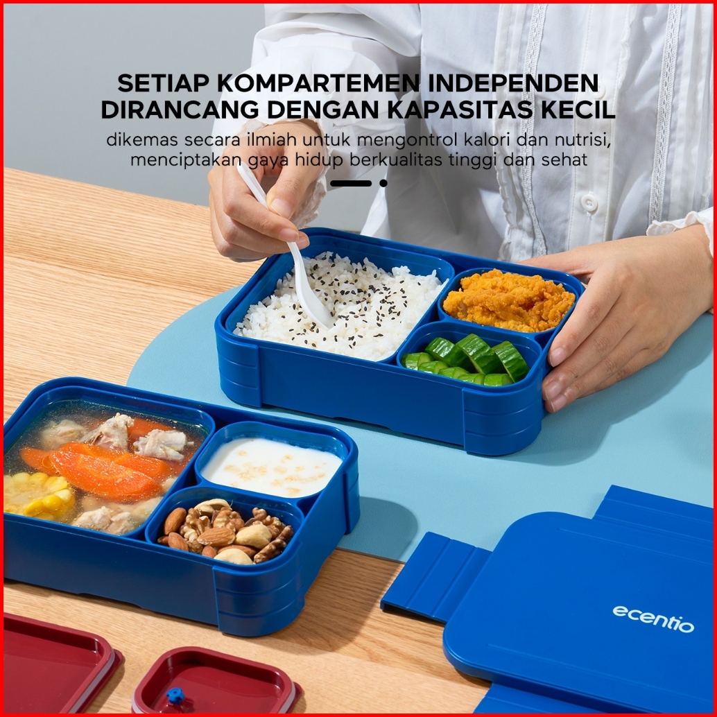 Ecentio Kotak Makan Anti Tumpah Lunch Box Kotak Bekal 3 Sel Dapat Dilepas-pasang Kompartemen Terpisah 1150ml Kotak Makan