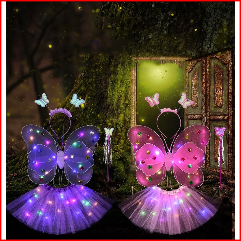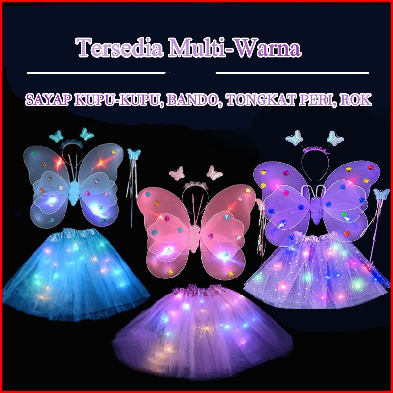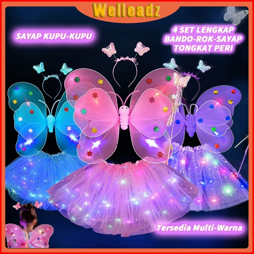 1sett 4in1 Sayap Peri Kupu Kupu Led Sayap Tongkat Bando Rok Tutu Led Bercahaya Sayap Peri Pesta Led Kedip Bercahaya Fair