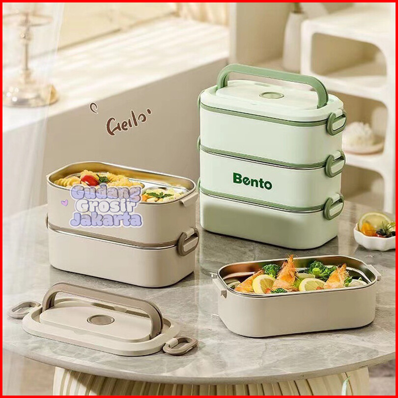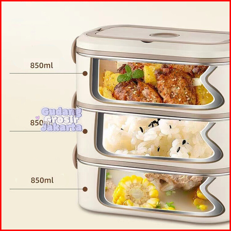 Lunch Box Stainless 304anti Bocor Kapasitas Besar Tahan Karat Panas Cocok Untuk Kantor Sekolah