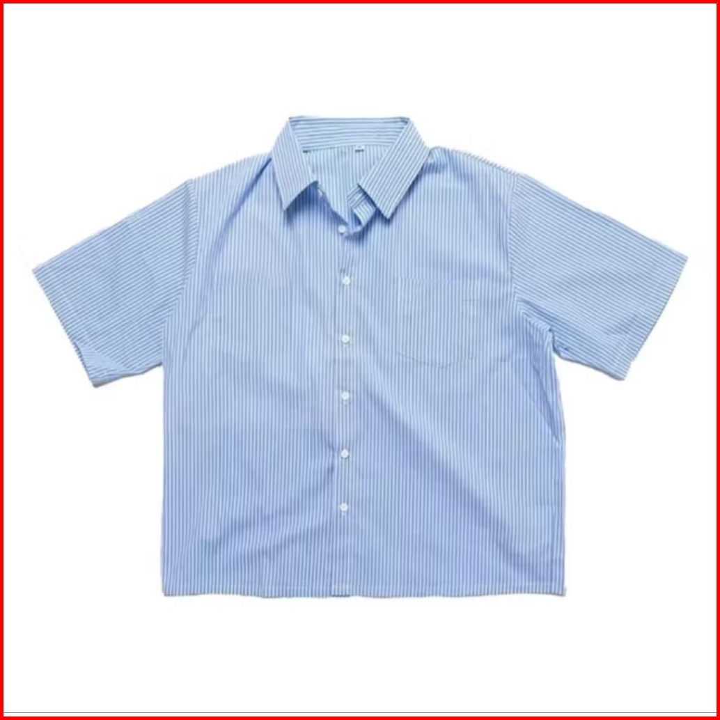 Outfit Skena Kemeja Stripe Biru Boxy Fit Crop Skena - Polos Biru