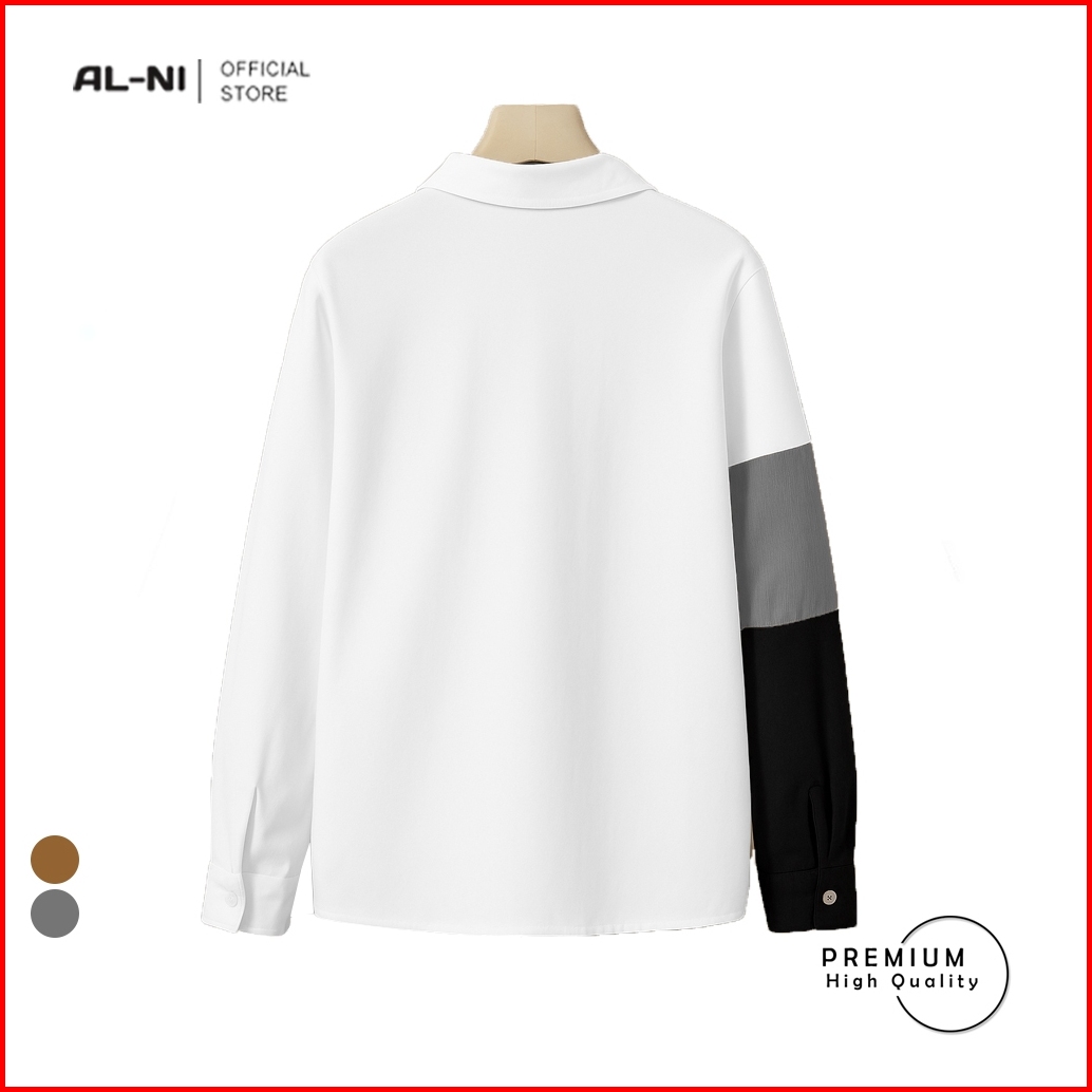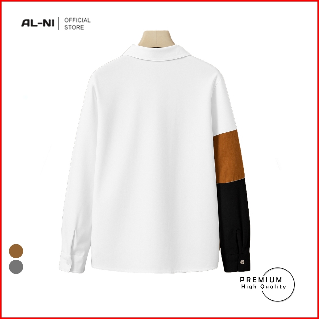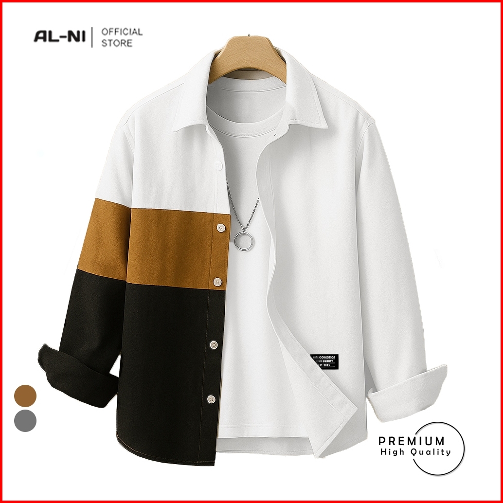 Alni Store - Kuzma Kemeja Pria Lengan Panjang Santai Casual Premium High Quality Dengan Desain Warna Hitam Putih Abu-abu