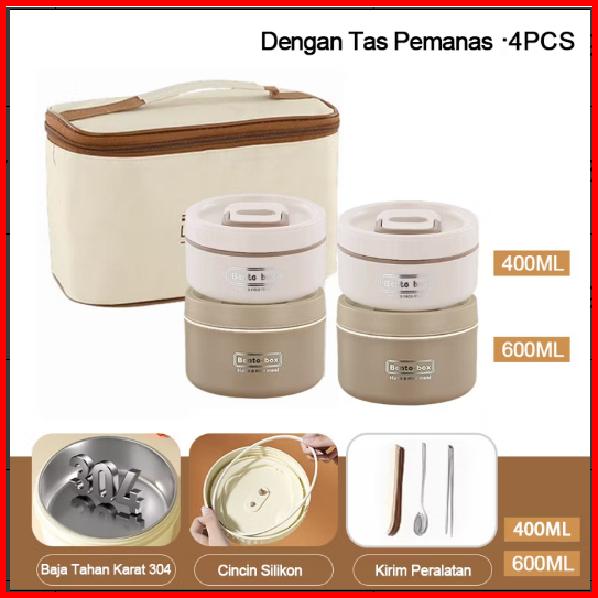 Lunch Box Stainless Tempat Bekal Tempat Makan Stainless Bekal Makan Set 304 Baja Tahan Karat Yang Dapat Dipanaskan Denga