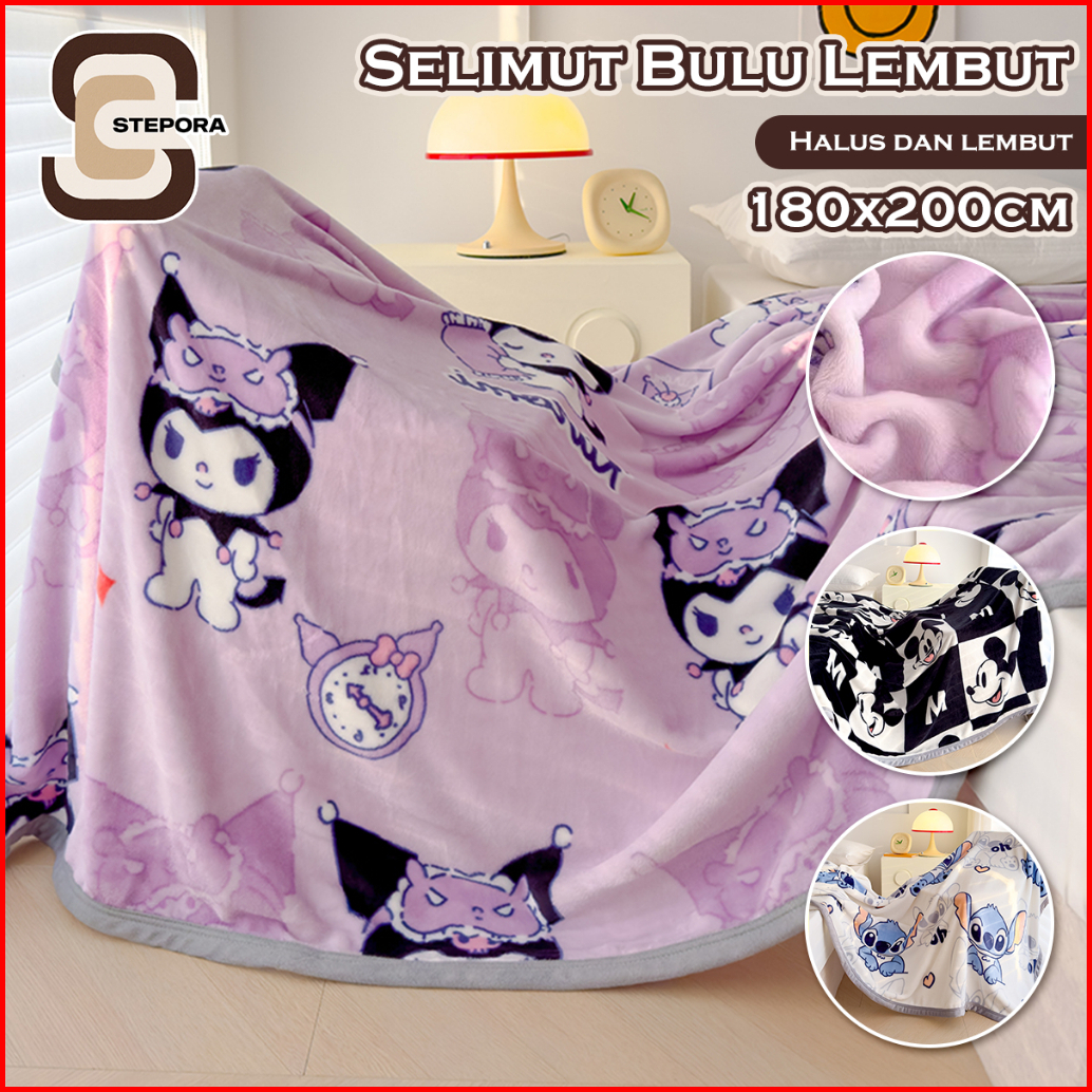 Selimut Bulu Halus Lembut Bahan Flanel Polyester Uk 180x200cm Motif Hewan Karakter Estetik