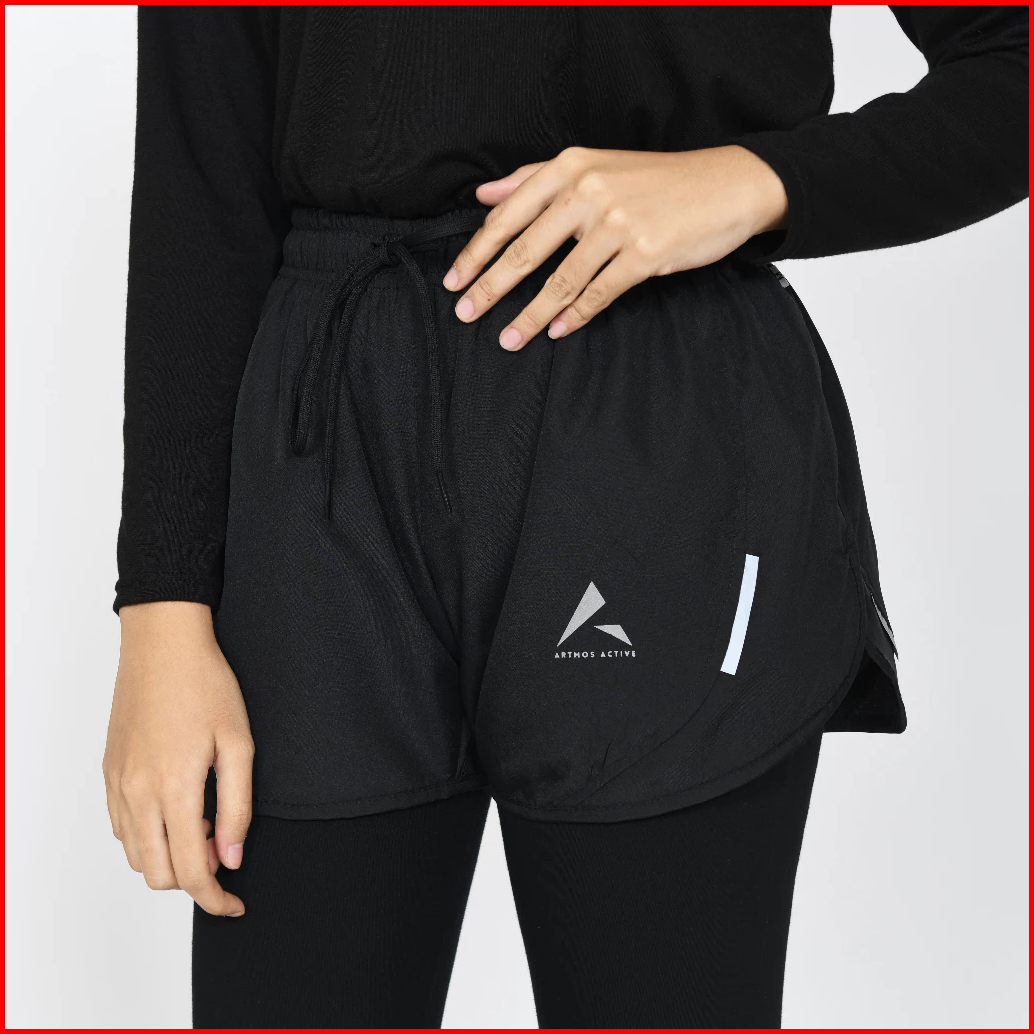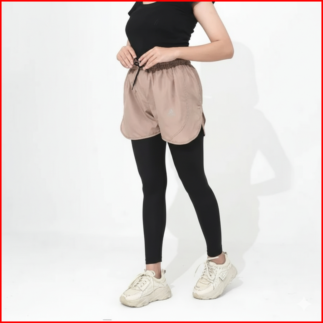 Elydra - Celana Olahraga Wanita 2in1 Legging Panjang Dan Celana Pendek Padel Running Gym Yoga Voli