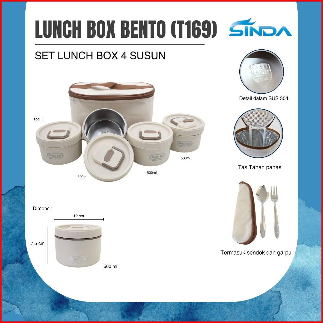 Sinda Kotak Makan Portable Tahan Panas Container Sealed Round Stainless Lunch Box Tahan Bocor Kotak Makan 1 Set Premium