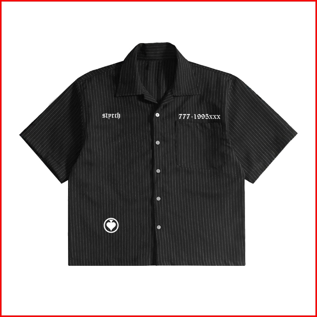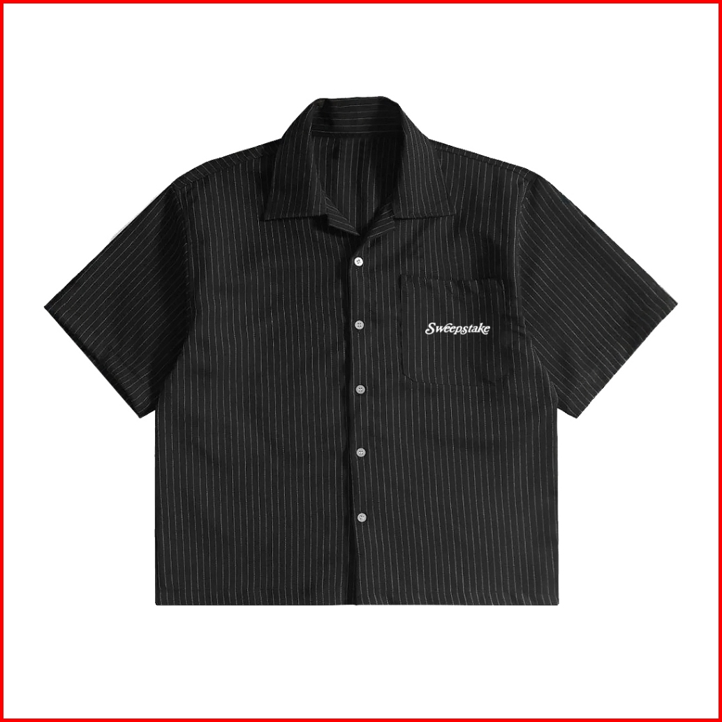 Sweepstake Kemeja Strip Stripe Hitam Boxy Fit