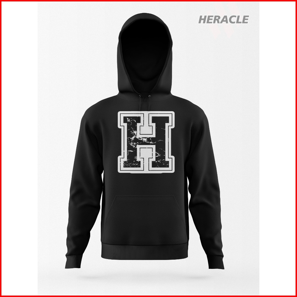 Heracle - Sweater Hoodie Jaket Casual Set Joger Pria Huruf Abjad A-z Dtf Premium Cotton Fleece Hitam