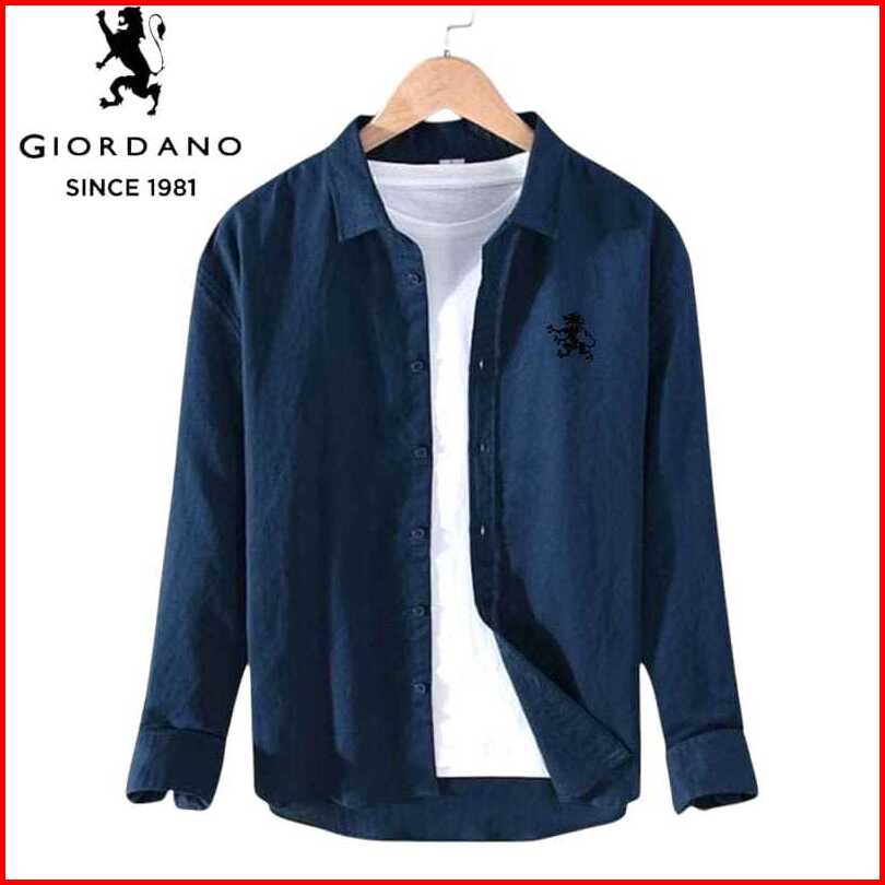 Kemeja Giordano Pria Lengan Panjang Polos Slim Fit Bahan 100 Full Katun Kemeja Formal Pria Kemeja Pria Stylish Kasual
