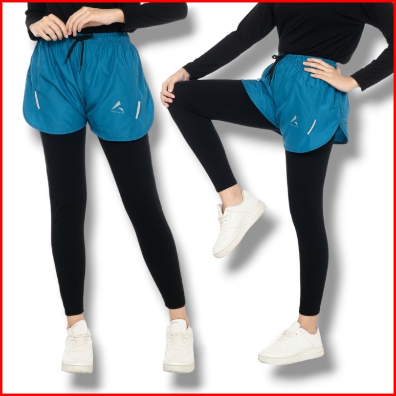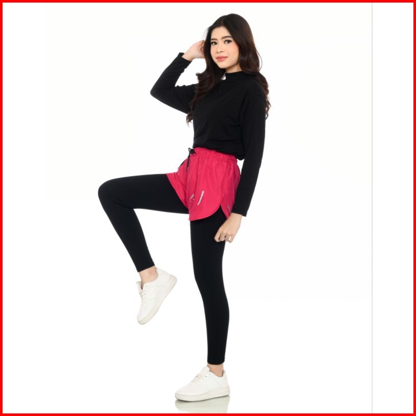 Hotpants Celana Pendek Olahraga Wanita Pria 2in1 Legging Panjang Dry Fit Jumbo Running Lari Marathon Badminton Gym Paras