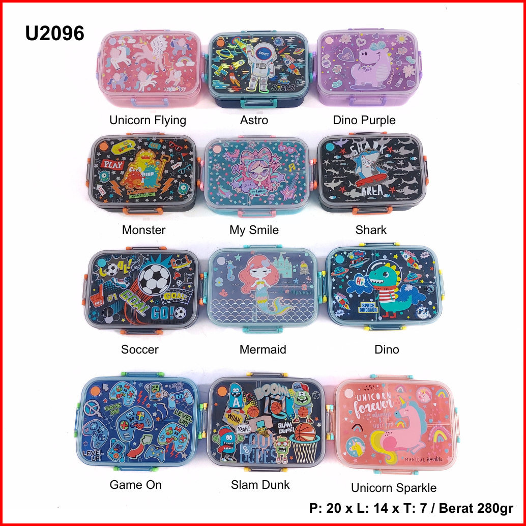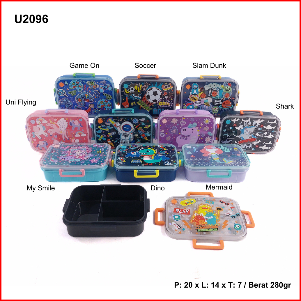 Bento Box U2096 Sekat 3 Motif Karakter Anak Tanpa Stainless