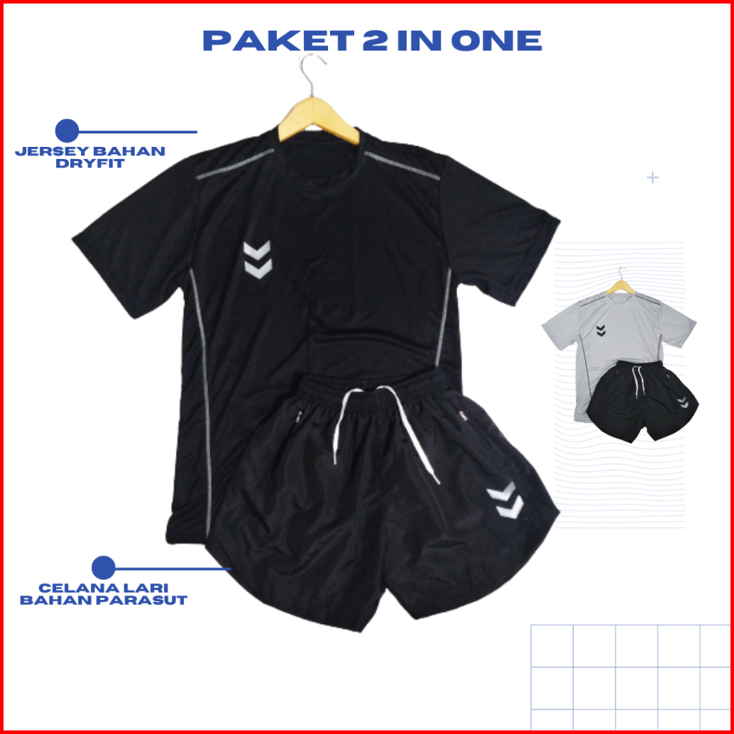 Paket 2 In One Stelan Jersey Olahraga Celana Parasut Lari Gym Binsik Model Kumis