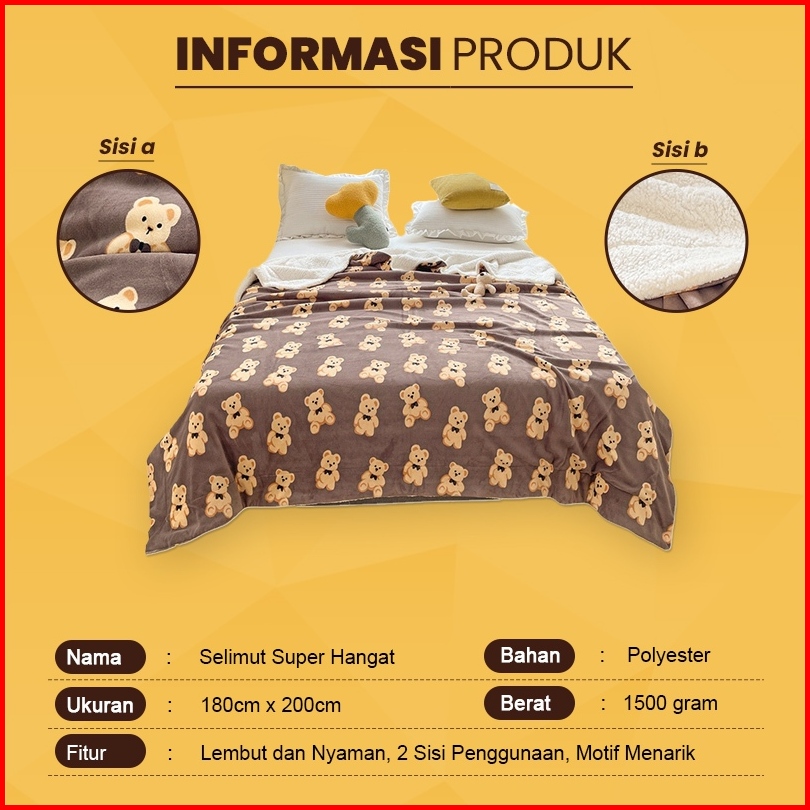 Selimut Tebal Anak Bulu Halus Ukuran King 180cm X 200cm Dewasa Tebal 2sisi Mt-5a Friendly Mattindo