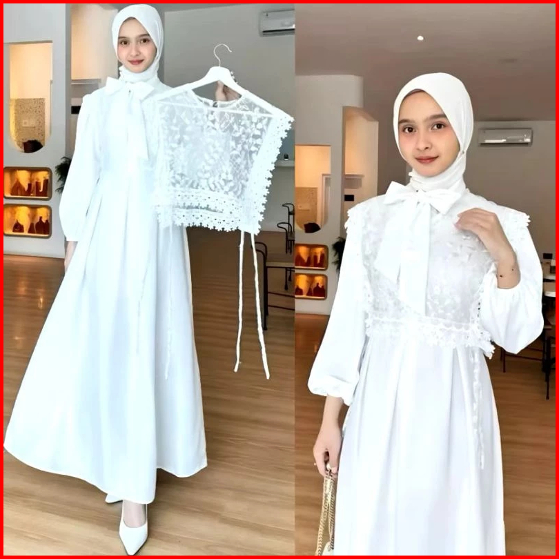Best Seller Gamis Brukat Putih Muslimah Syakila Model Tille Oufit Dress Lebaran Kondangan Lamaran