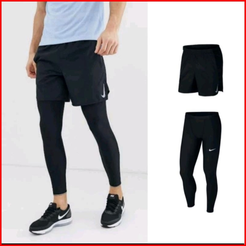 Celana Running Pendek 2in1 Pria Wanita Legging Panjang Olahraga Fitnes Senam Zumba Running Lari Fitnes Senam Zumba Badmi