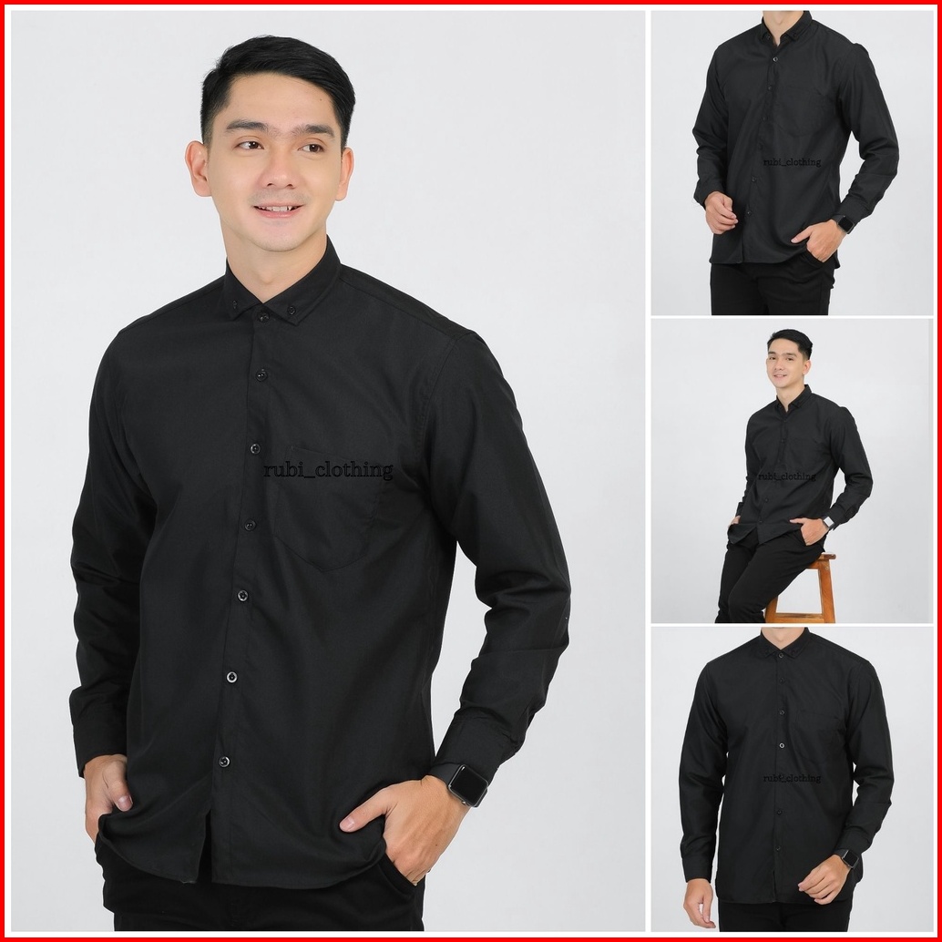 Kemeja Pria Lengan Panjang Casual Kemeja Cowok Cowo Hem Lelaki Kemeja Hitam Baju Kemeja Polos Katun Kerja Kantor Formal
