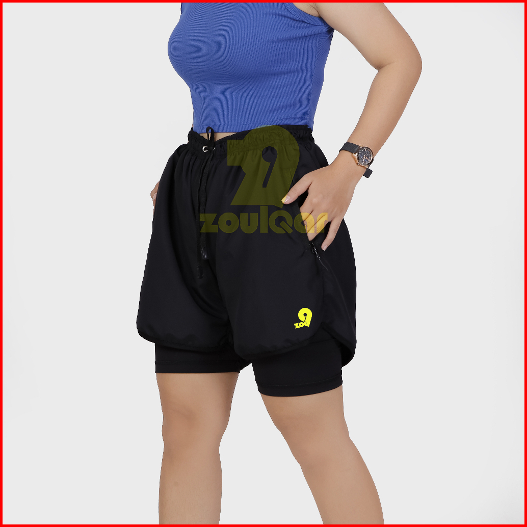 Celana Olahraga Wanita Pendek Parasut 2 In 1 Kolor Shortpants Leeging Zou9