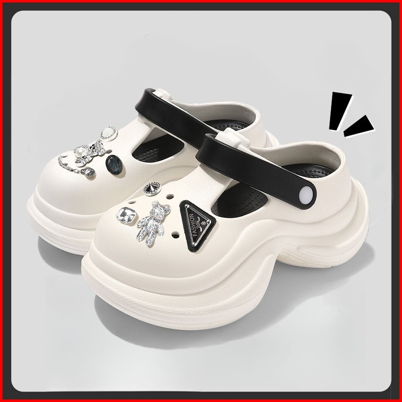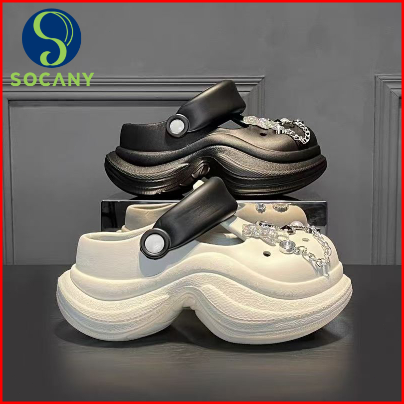 Socany New Clog Sendal Baim Wanita Wedges Tinggi 9cm Sandal Kodok Wanita Kekinian Sandal 3d Jibbitz