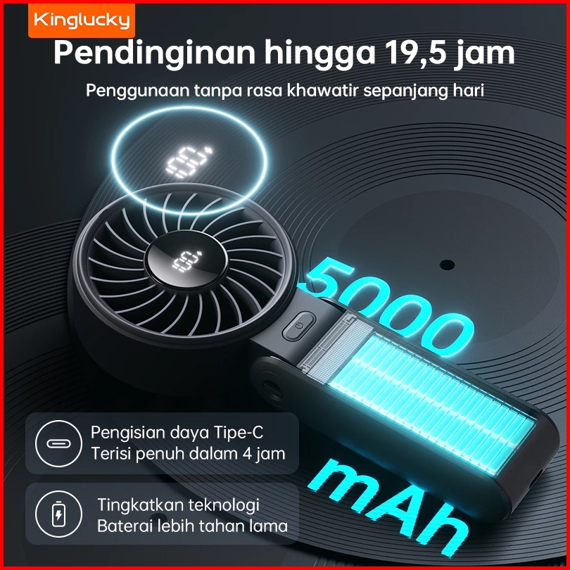 Kinglucky High-speed Kipas Mini Portable Kipas Angin 100 Gear Wind Dapat Dilipat Digital Display Adjustable Turbo Kipas