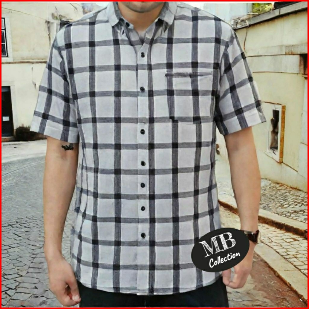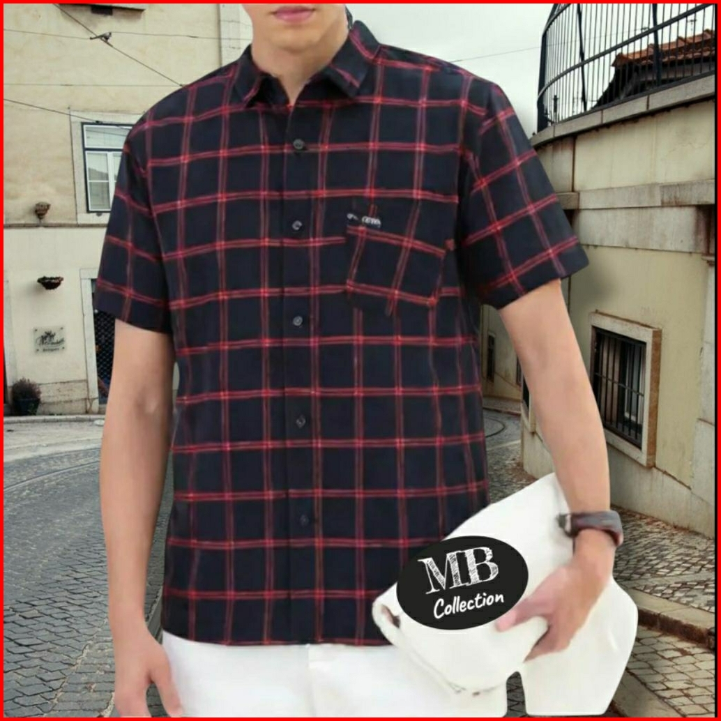 Kemeja Flanel Lengan Pendek Pria Kualitas Distro Standar Dewasa