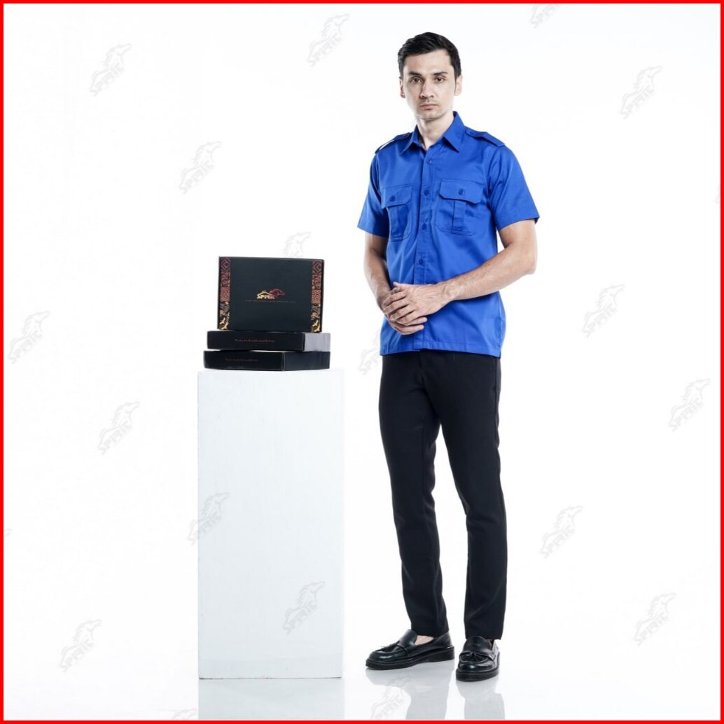 Kemeja Seragam Formal Pria Lengan Pendek Biru Bahan American Drill Premium Nyaman Dipakai Harian