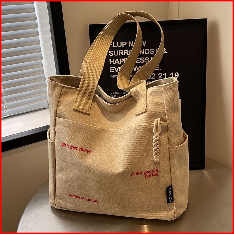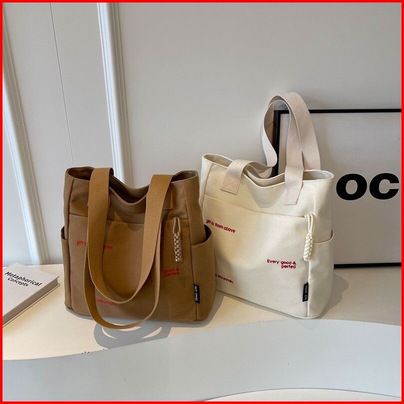 Tote Bag Wanita Kanvas Tas Korean Style Tas Bahu Wanita Tas Kantor Tas Sekolah College Totebag