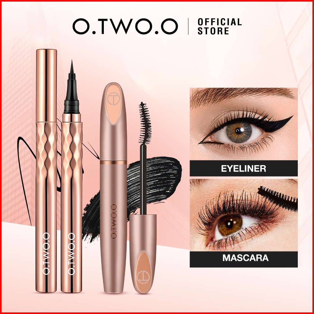 O.two.o 2pcs Set Eye Makeup Volume Mascara Slender Mascara Eyeliner Waterproof Long-lasting