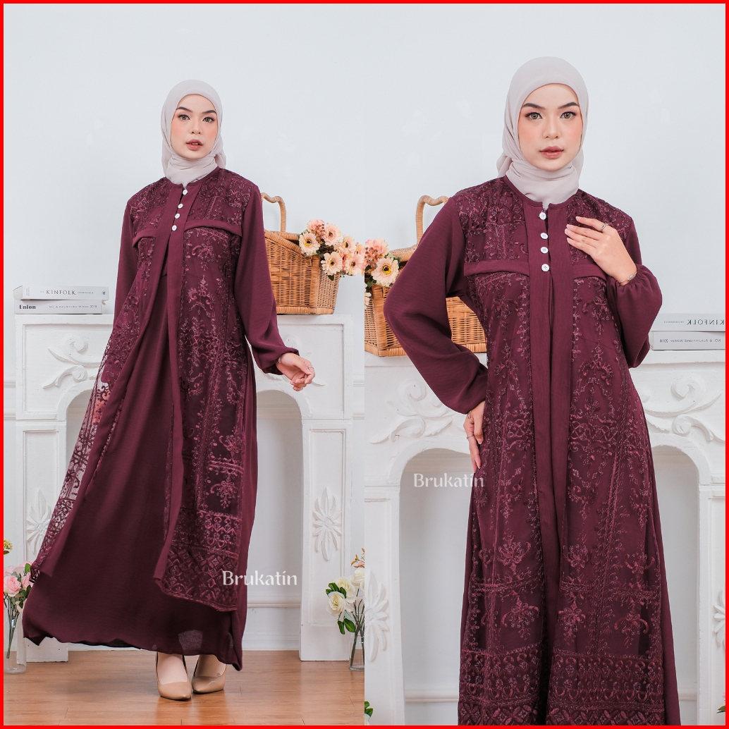 Brukatin Zalsa Dress Gamis Crinkle Sutra Mix Brukat Etnik Sapto Baju Pesta Mewah Elegan
