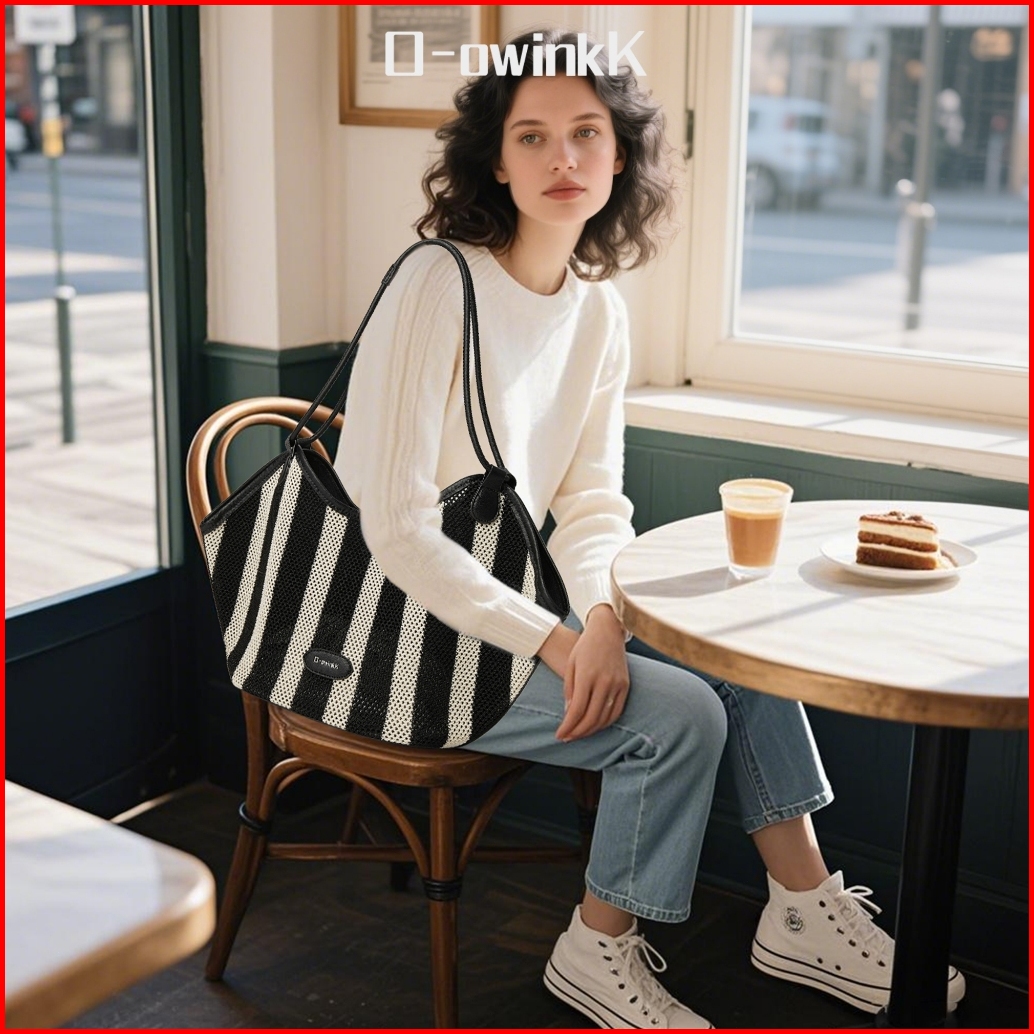 O-owinkk Tas Bahu Tas Tangan Tote Kapasitas Besar Tas Kain Jaring Dengan Lubang Memberikan Kantong Dalam Gratis