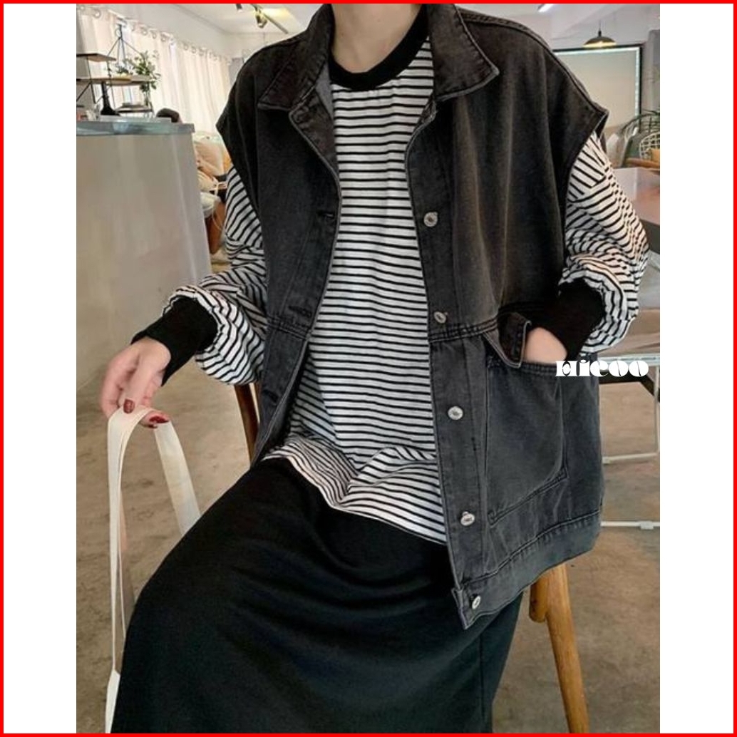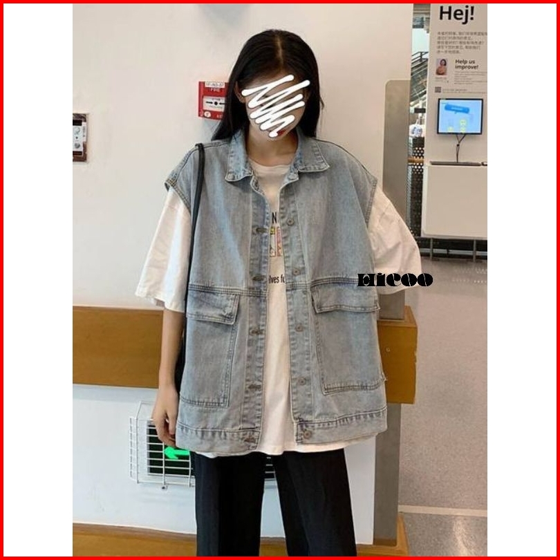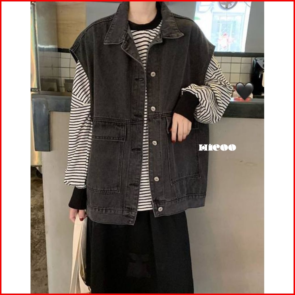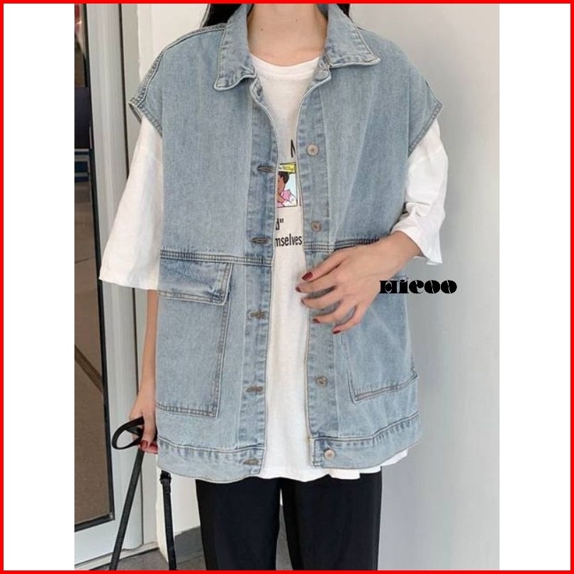 Hicoo Jean Jaket Rompi Jeans Oversize - Outer Denim Vest Sleeveless Vintage Korean Style