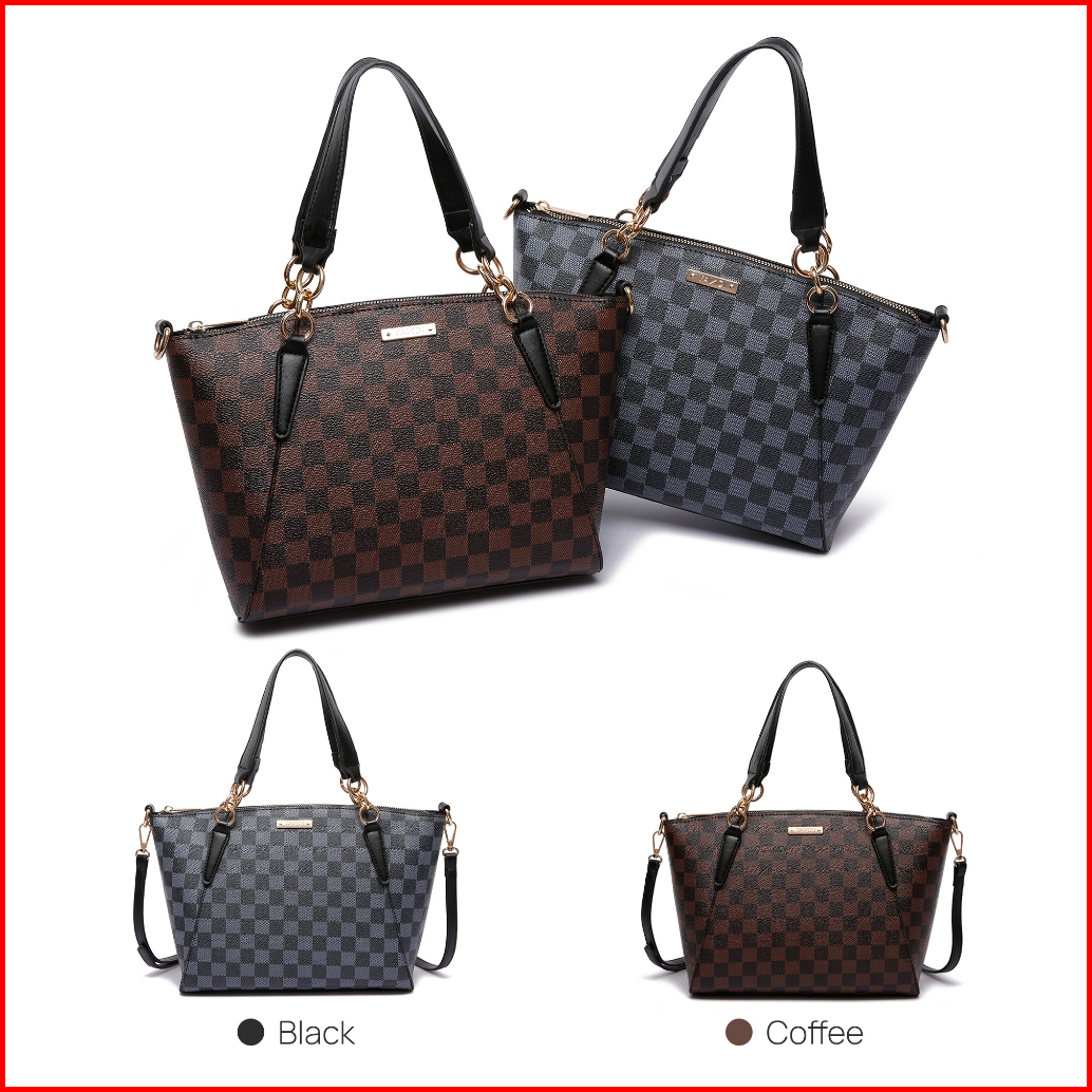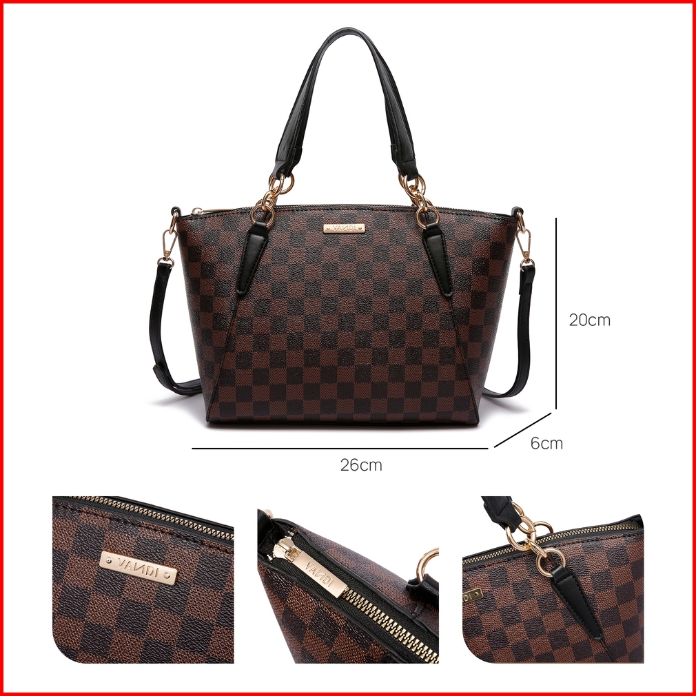 Vandi Tas Wanita Bianca Tote Bag Selempang Motif Kotak Kekinian Desain Elegan