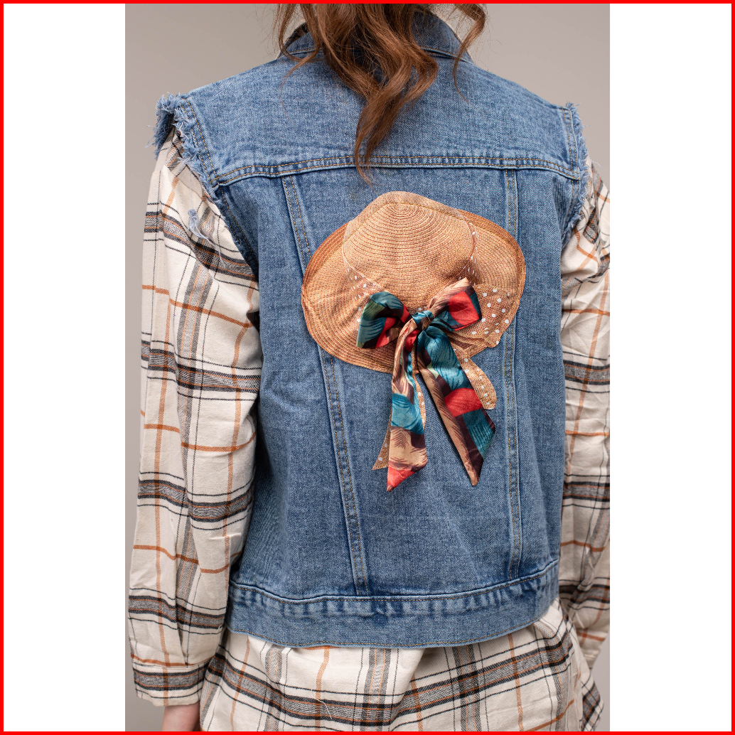 Avenue Vest Denim Character Pack - Rompi Denim Motif Timbul Sku 23538