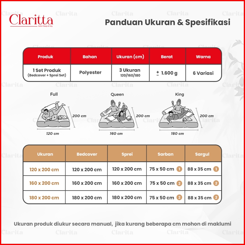 Claritta - Set Sprei Bedcover Jepang Polos Set Selimut Sprei Bahan Microtex Selimut Saja Polos