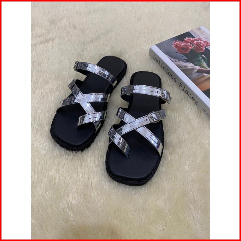 Sandal Bianca Tali Wanita Kulit Sintetis Mewah