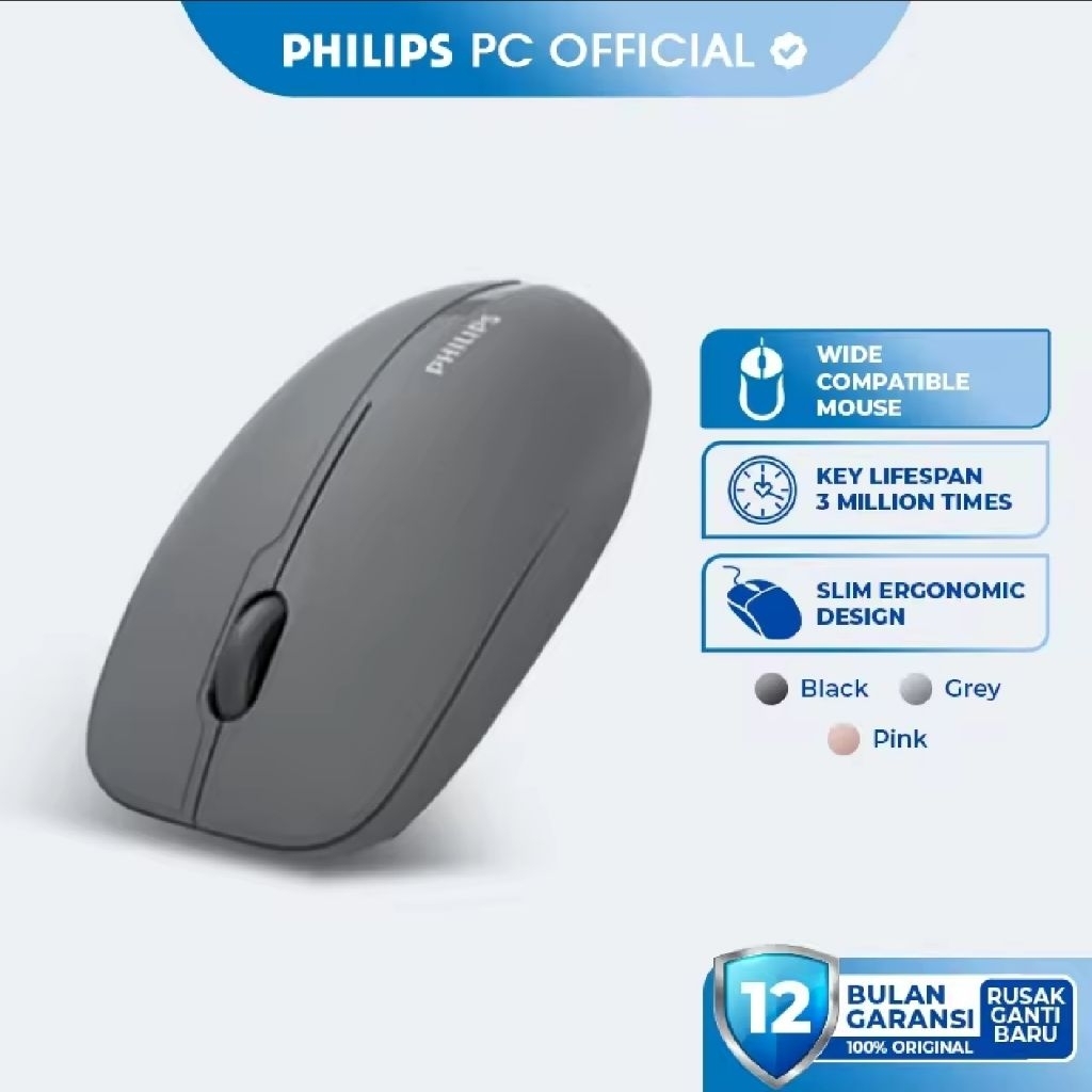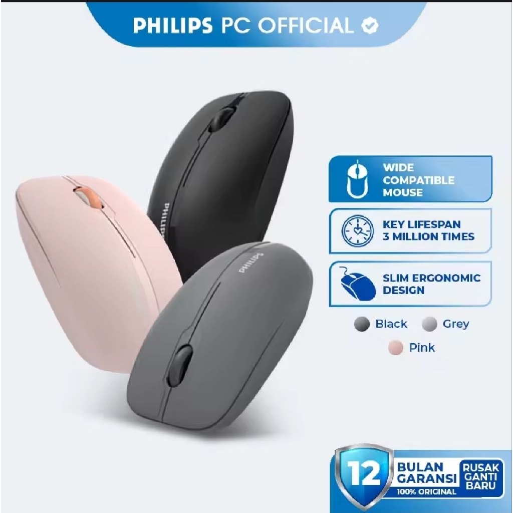 Philips Mouse Dual Mode Wireless + Bluetooth Silent Clicks 1600 DPI SPK7418 Original - Garansi Resmi 1 Tahun