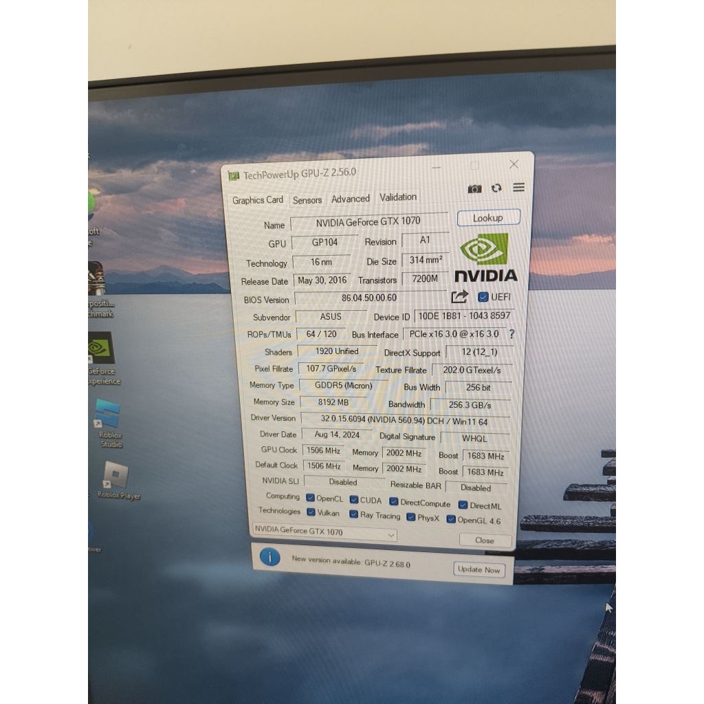 VGA ASUS GTX 1070 8GB DDR5 256BIT 2ND