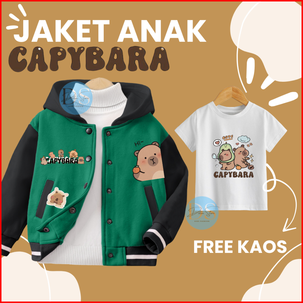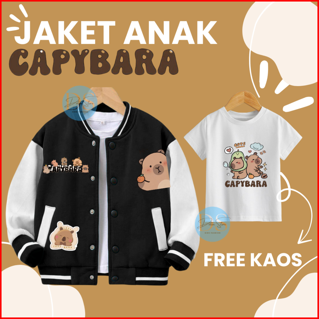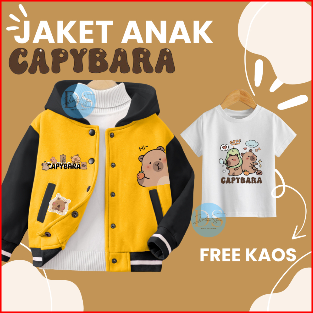 Jaket Anak Free Kaos Capybara Usia 2-12 Tahun Laki Laki Dan Perempuan