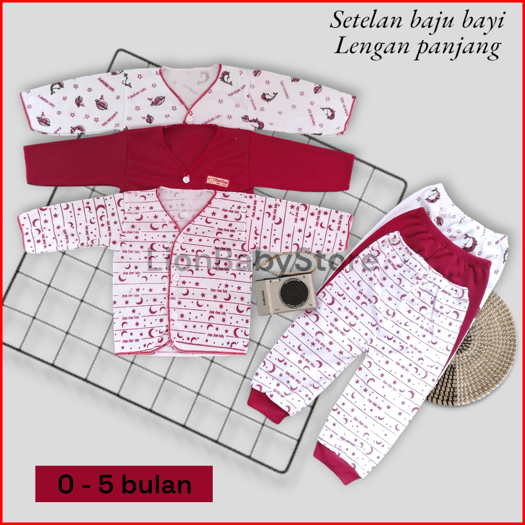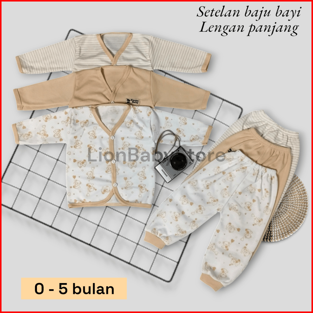 3 Set 6 Pcs Baju Bayi Lengan Panjang Celana Panjang Newborn Usia 0-3 Bulan Bayi Baru Lahir Terbaru
