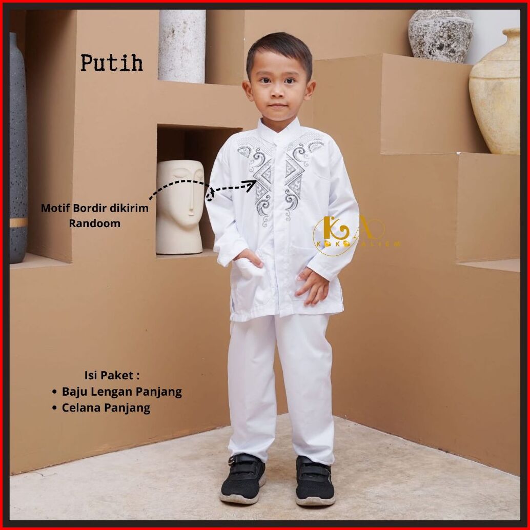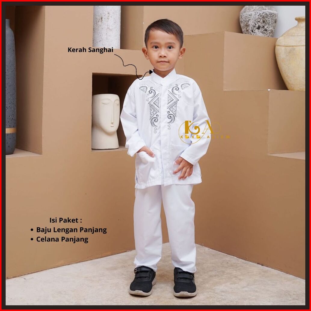 Baju Busana Muslim Anak Setelan Koko Warna Putih Lengan Panjang Untuk Tk Sd Mi