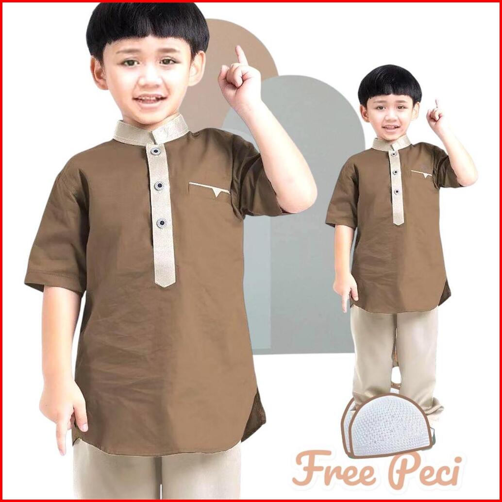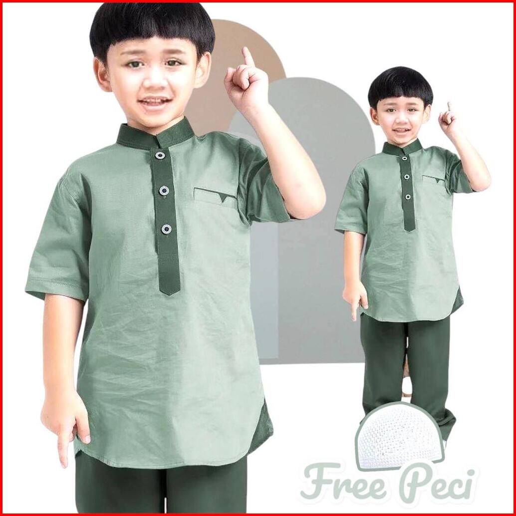 Setelan Baju Muslim Anak Laki Laki Terbaru One Set Baju Koko Anak Polos Lengan Pendek Baju Koko Anak 1-12 Tahun Promo Ba