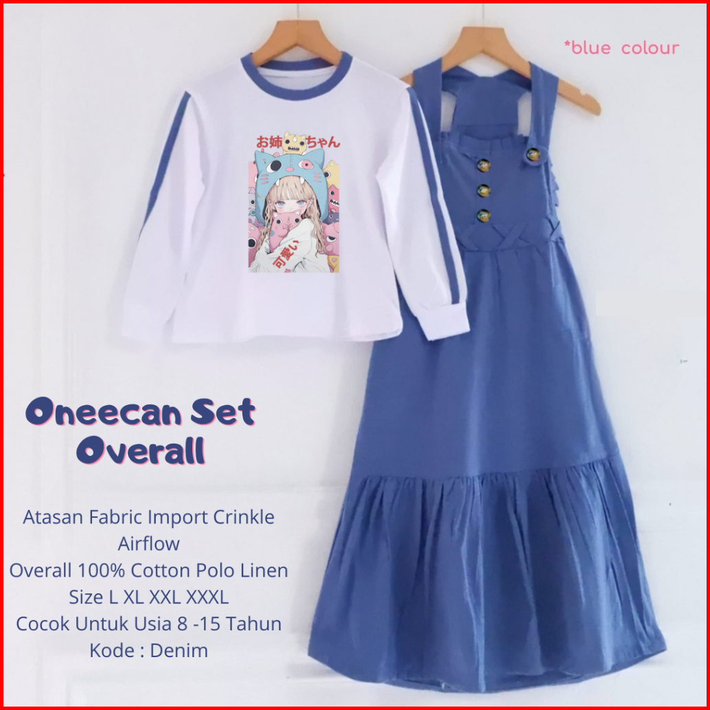Oneechan Set Kids Setelan Baju Anak Crinkle Lengan Panjang Dan Overall Linen Oneset Anak Usia 8-15 Tahun Baju Anak Remaj