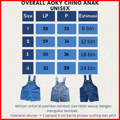 Overall Aoky Anak Laki Perempuan 6 Bulan - 4 Tahun