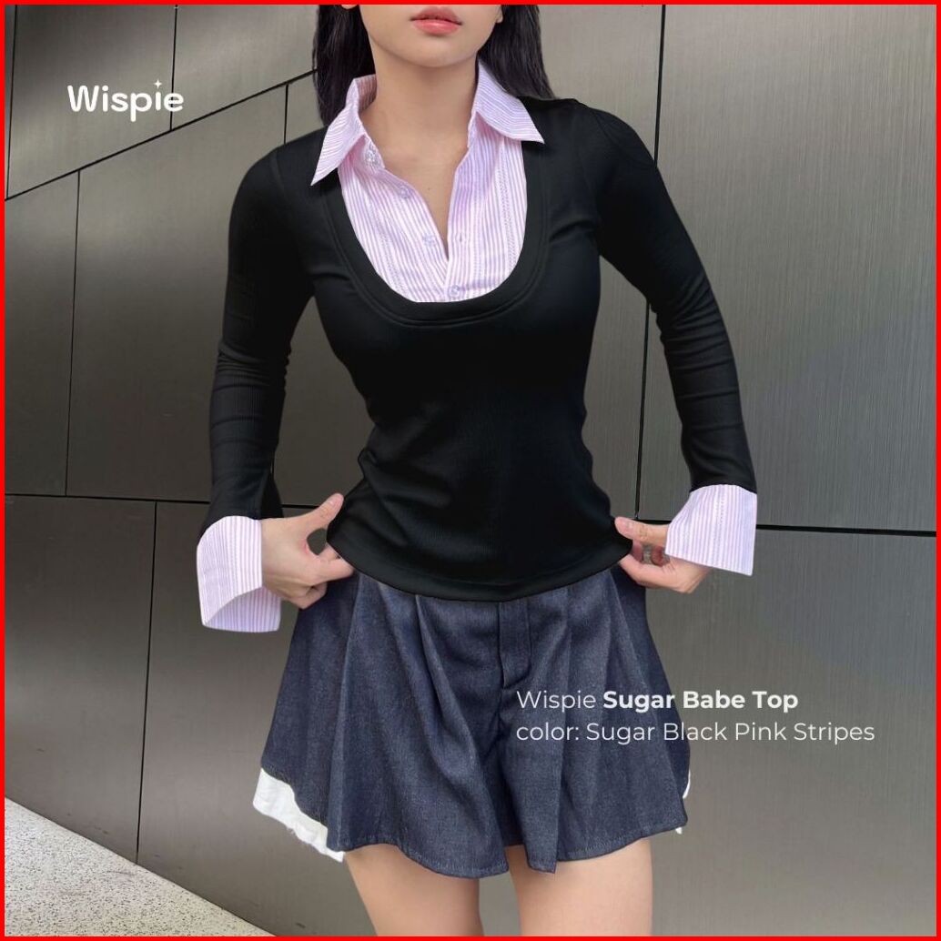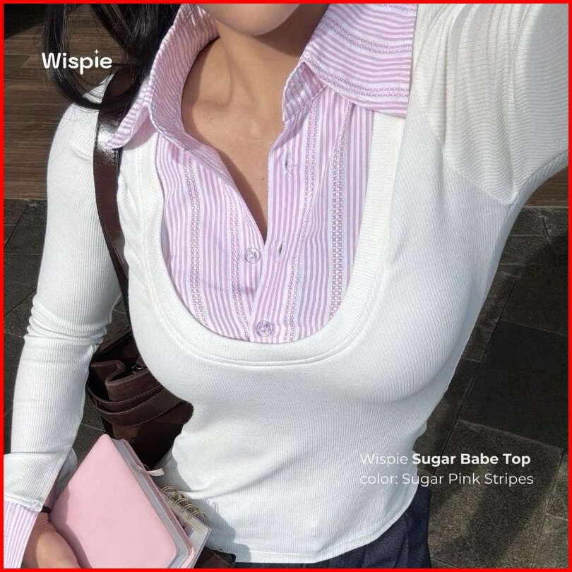 Wispie Sugar Babe Top Atasan Wanita Slim Fit Kemeja Knit Press Body Rib