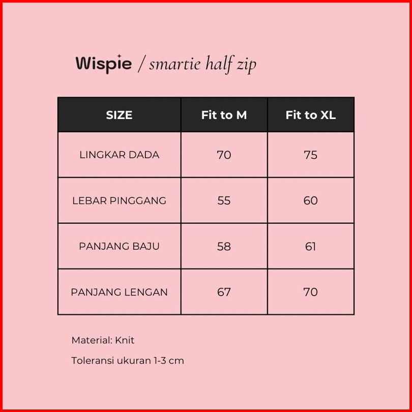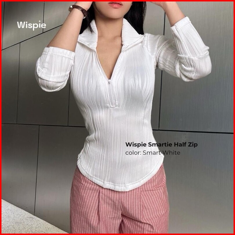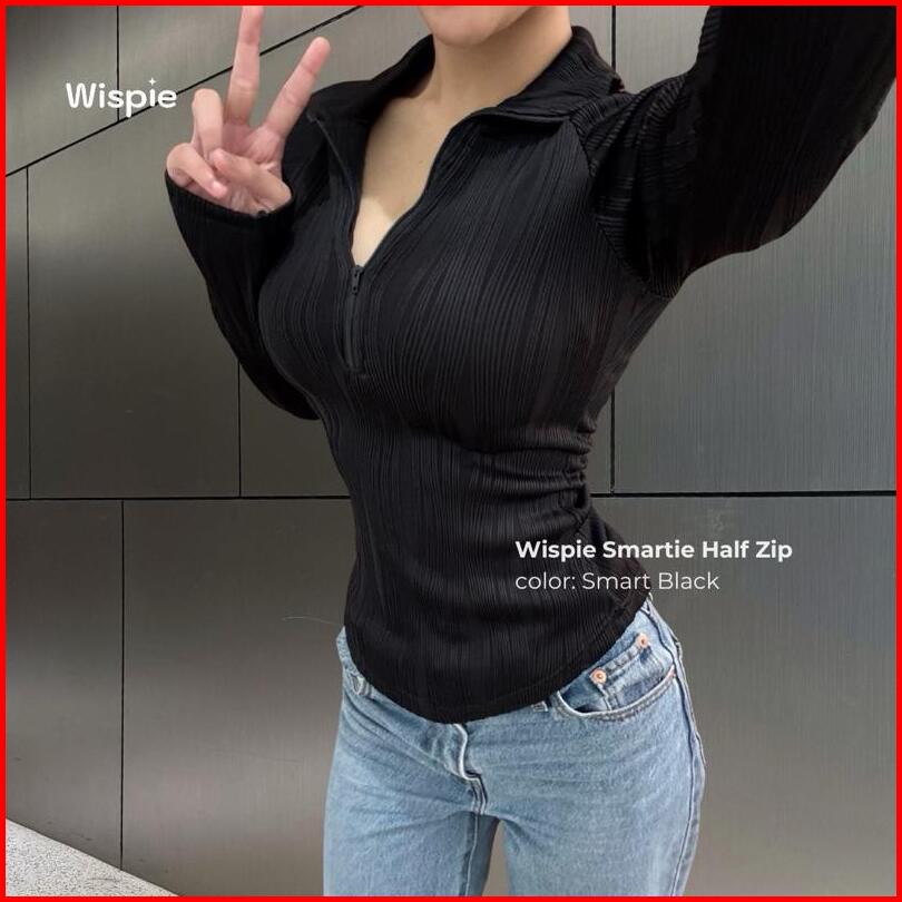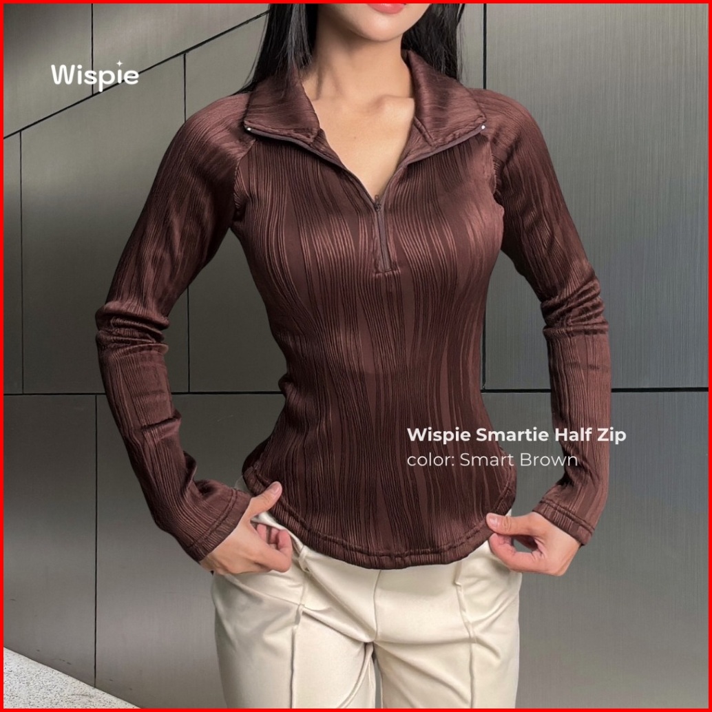 Wispie Smartie Half Zip Atasan Wanita Sleting Knit Bermotif Lengan Panjang Slim Fit Body