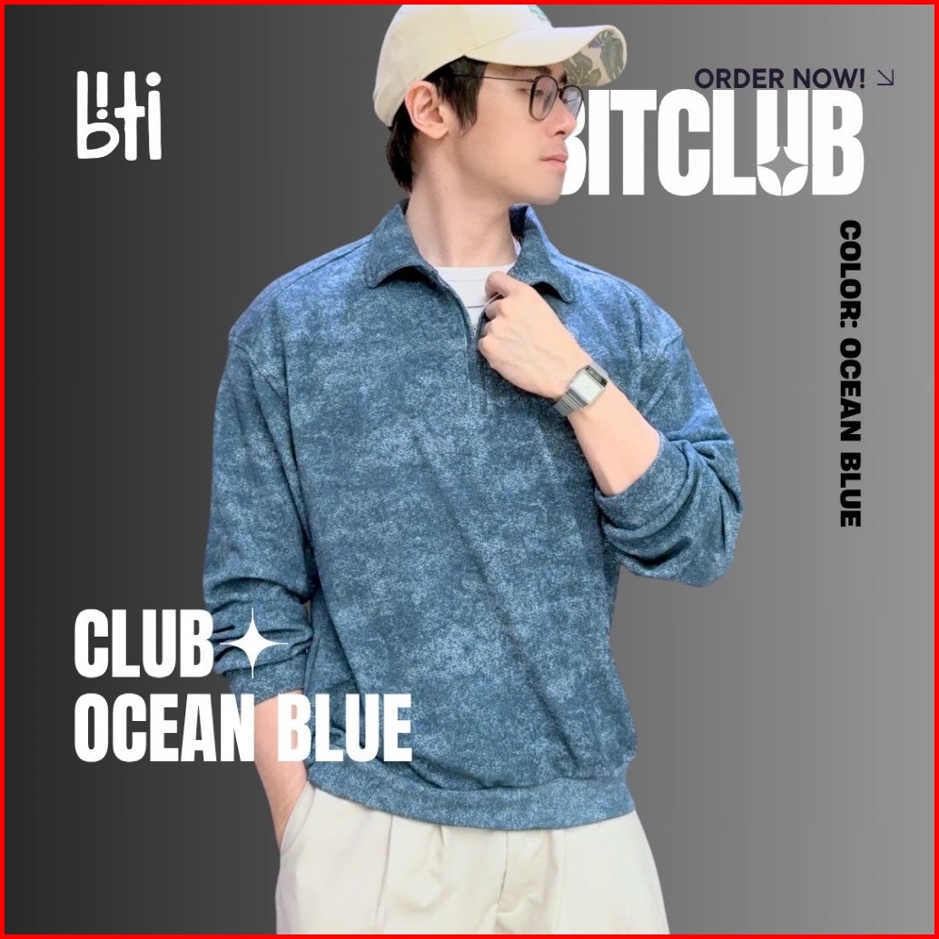 Biti Bitclub Polo Halfzip Shirt Kaos Polo Pria Knit Lengan Panjang Denim Print Motif Half Zip