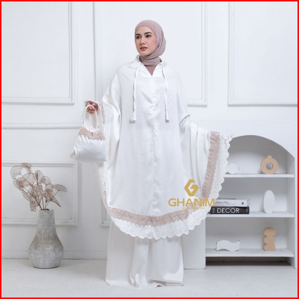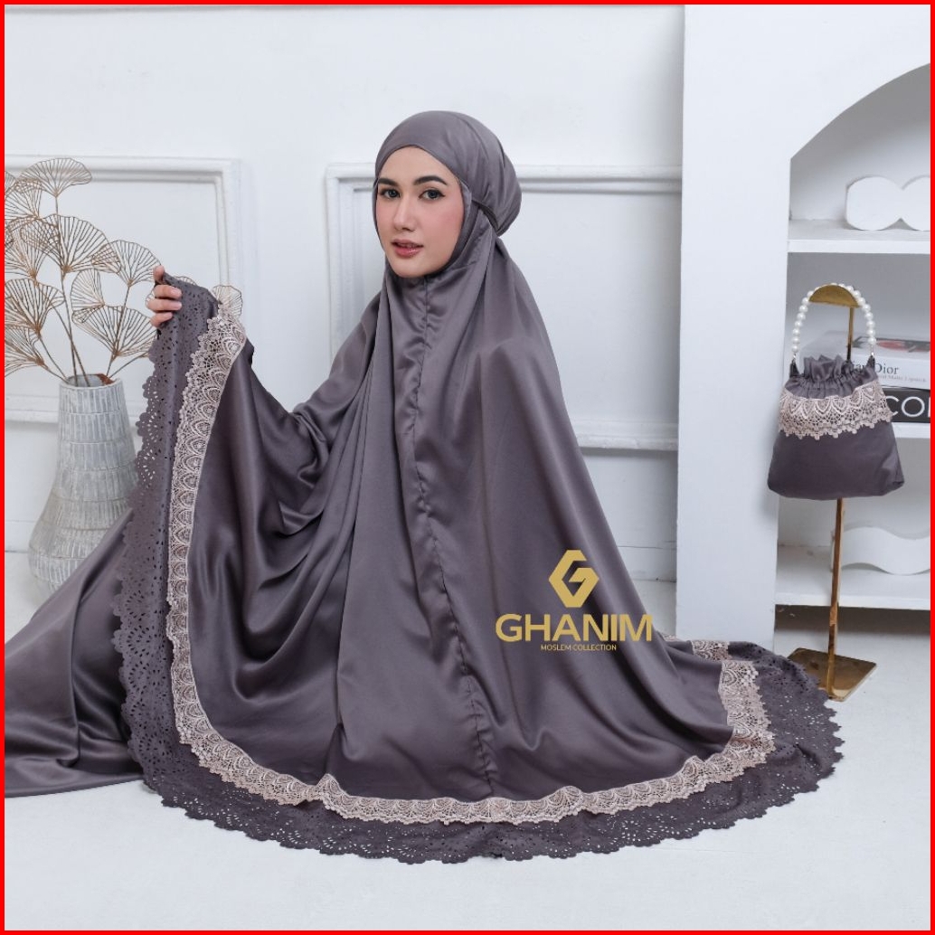 Ghanim-mukena Dewasa Sutra Velvet Laser Cut Renda Mewah