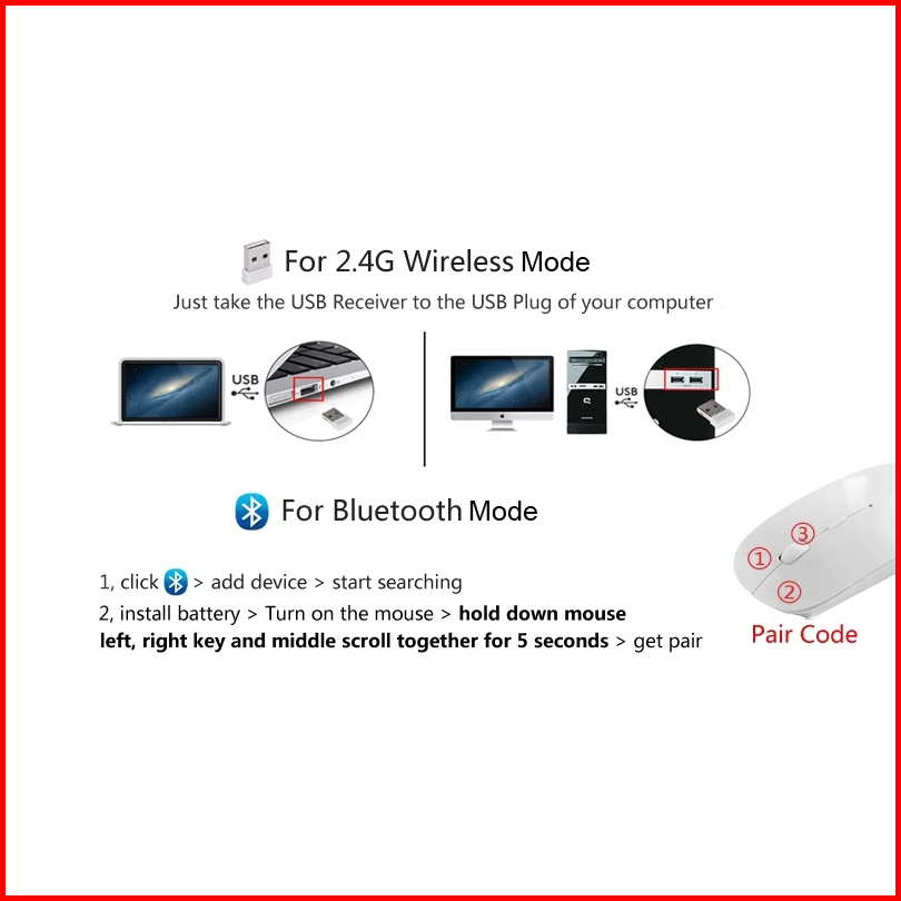 Goojodoq Dual Mode 2.4ghz Wireless Bluetooth 2 In 1 Cordless Mouse