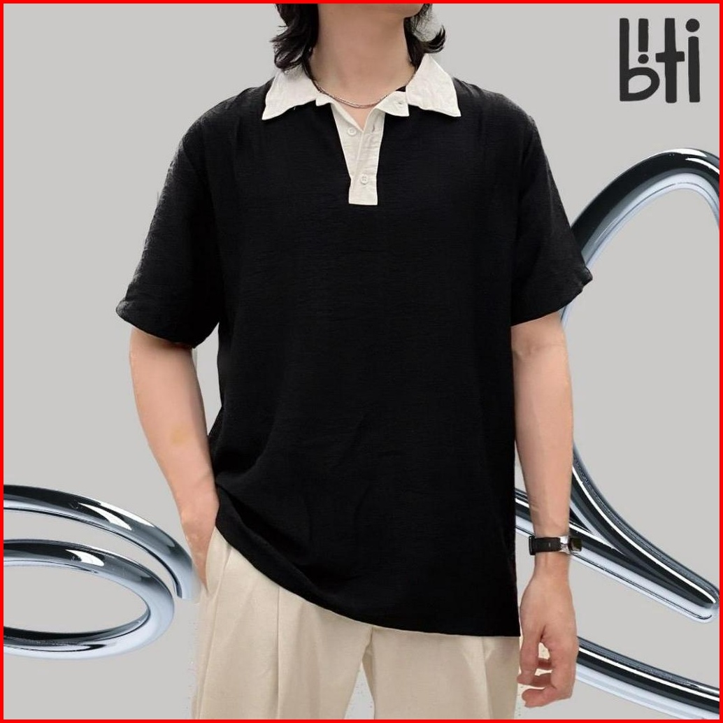 Biti Kemeja Contrast Berbahan Linen V-neck Katun