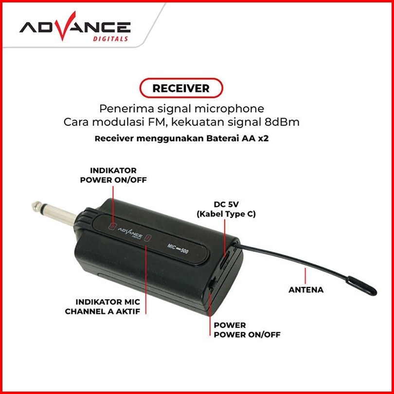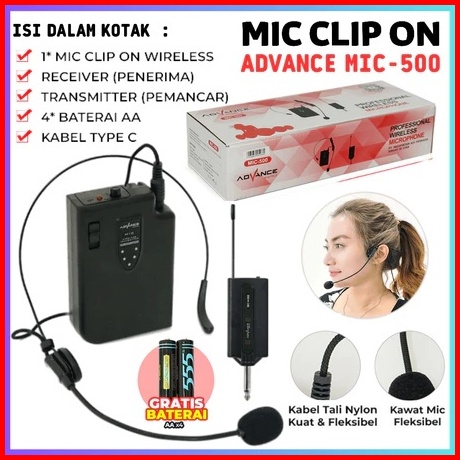Advance Microphone Wireless Mic-500 Mic Mini Mic Wireless Clip On Speaker Mikrofon Headset Untuk Pemandu Mic Murah Garan