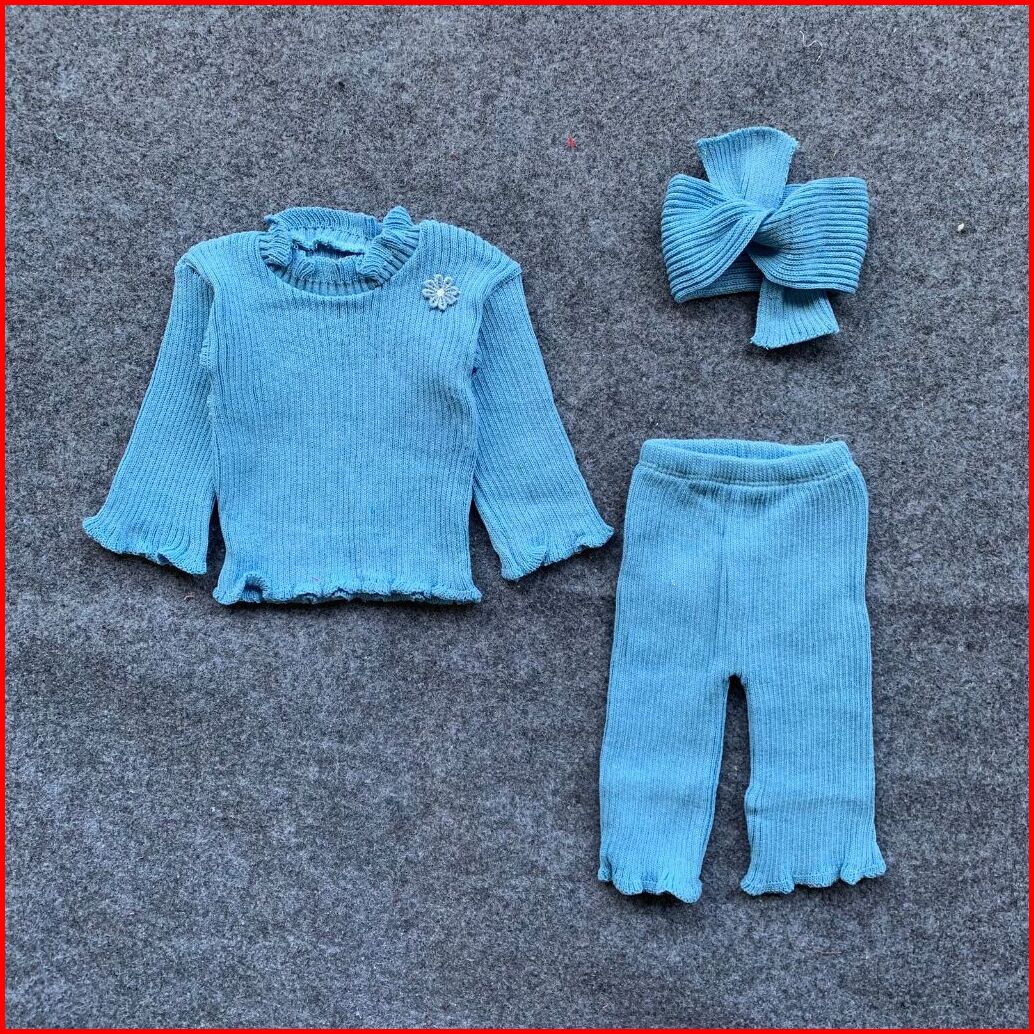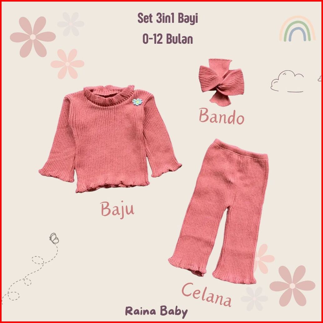 Paket Hemat Newborn 3in1 Setelan Rajut Baju Celana Bando Bayi Usia 0-12 Bulan Paket Kado Lahiran